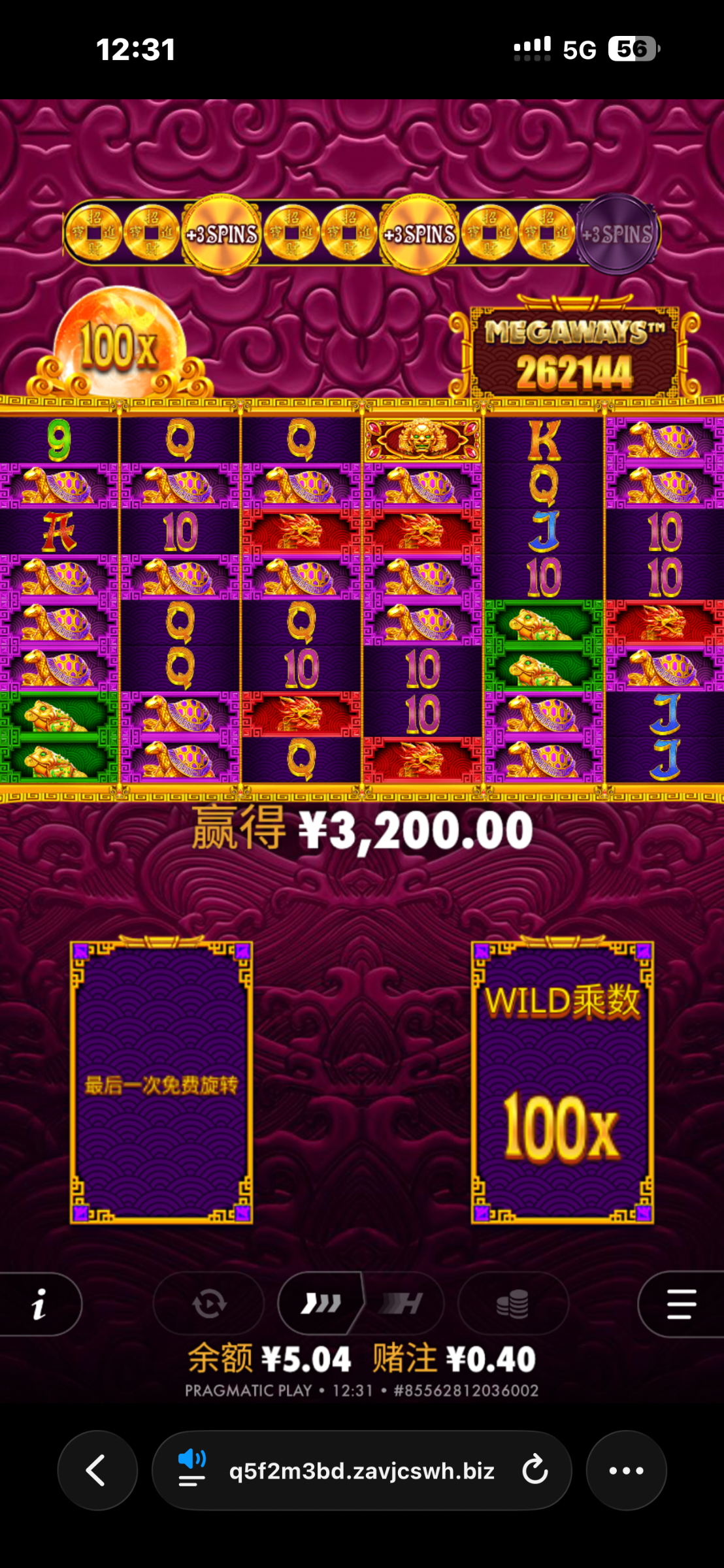 充了100进去没想到夺宝一直给免费旋转 平时最多20多倍这次直接68倍
