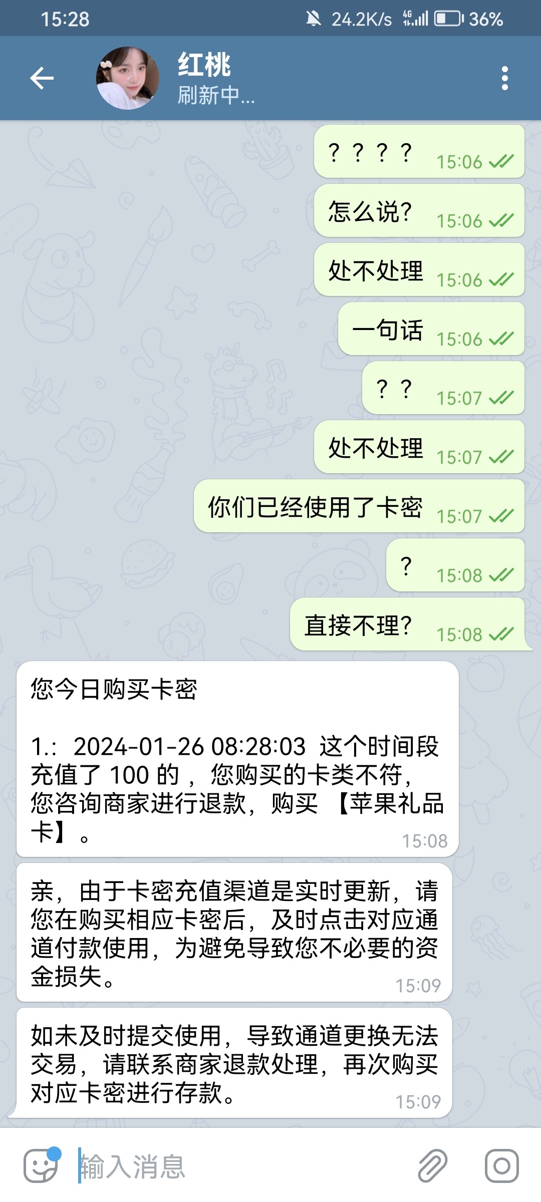 红桃国际一天我充值三次 黑了三次 不上分给我 第一次用苹果礼品卡 第二次是聚卡 第三次是支付宝
