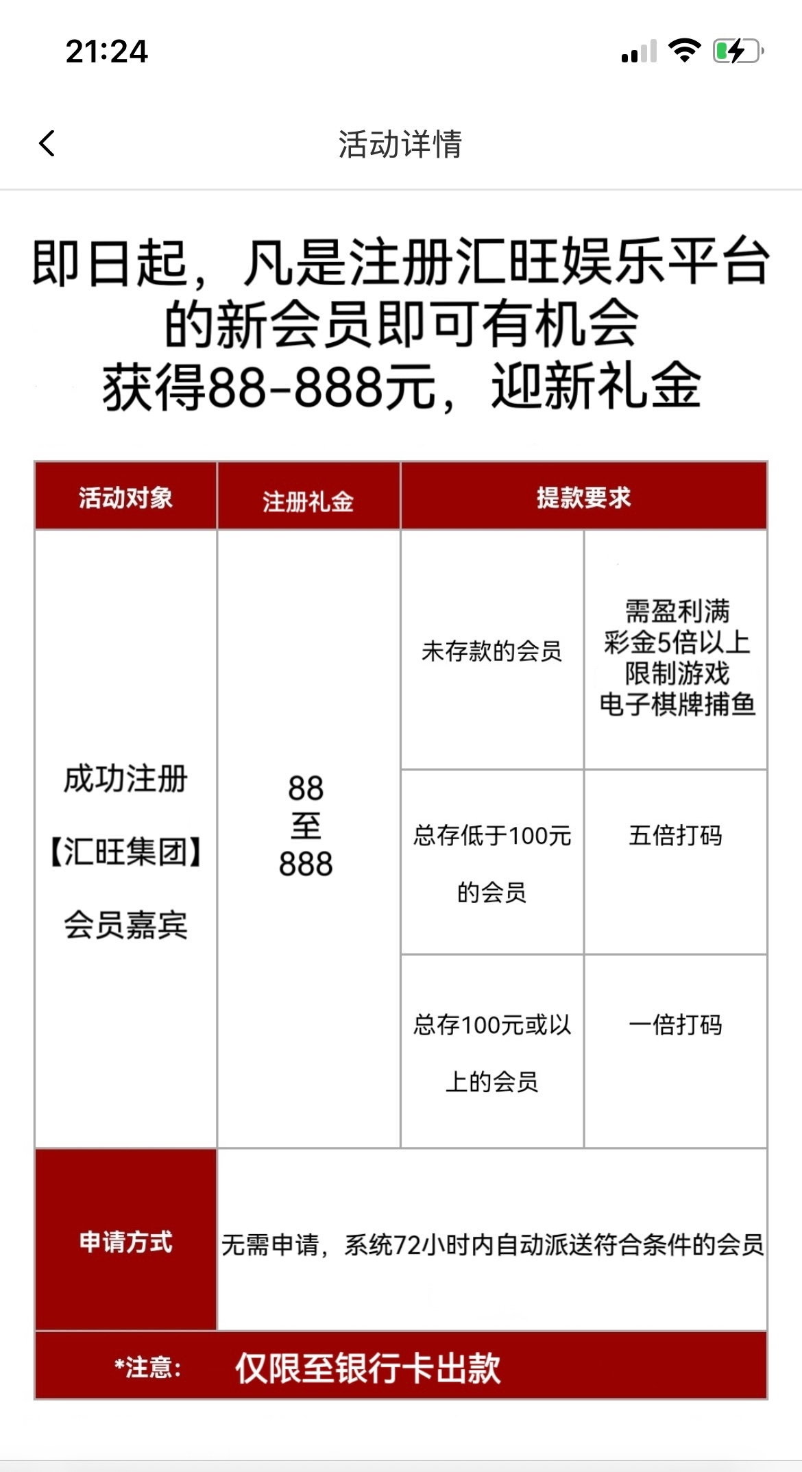 汇旺注册随机送88-888,多IP注册可能没有,最好一个IP注册,我是领到了138