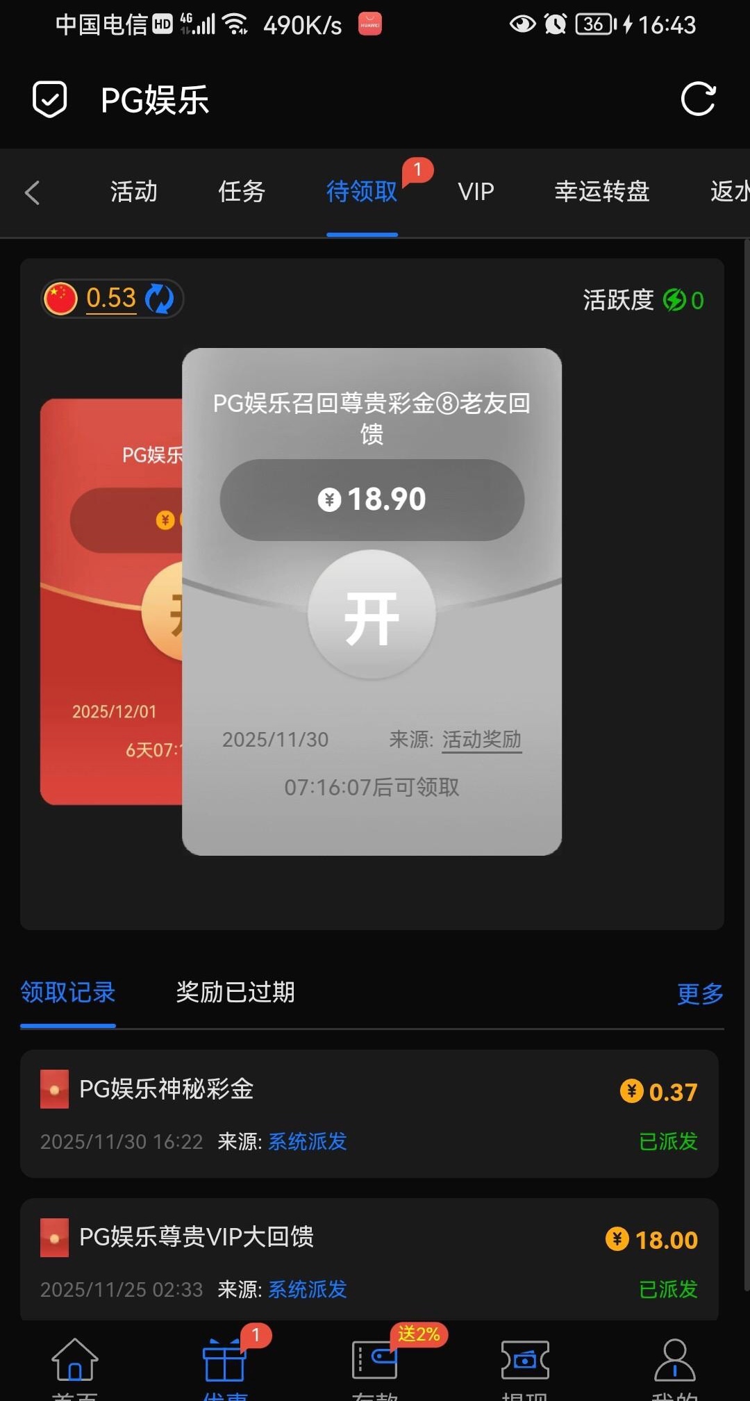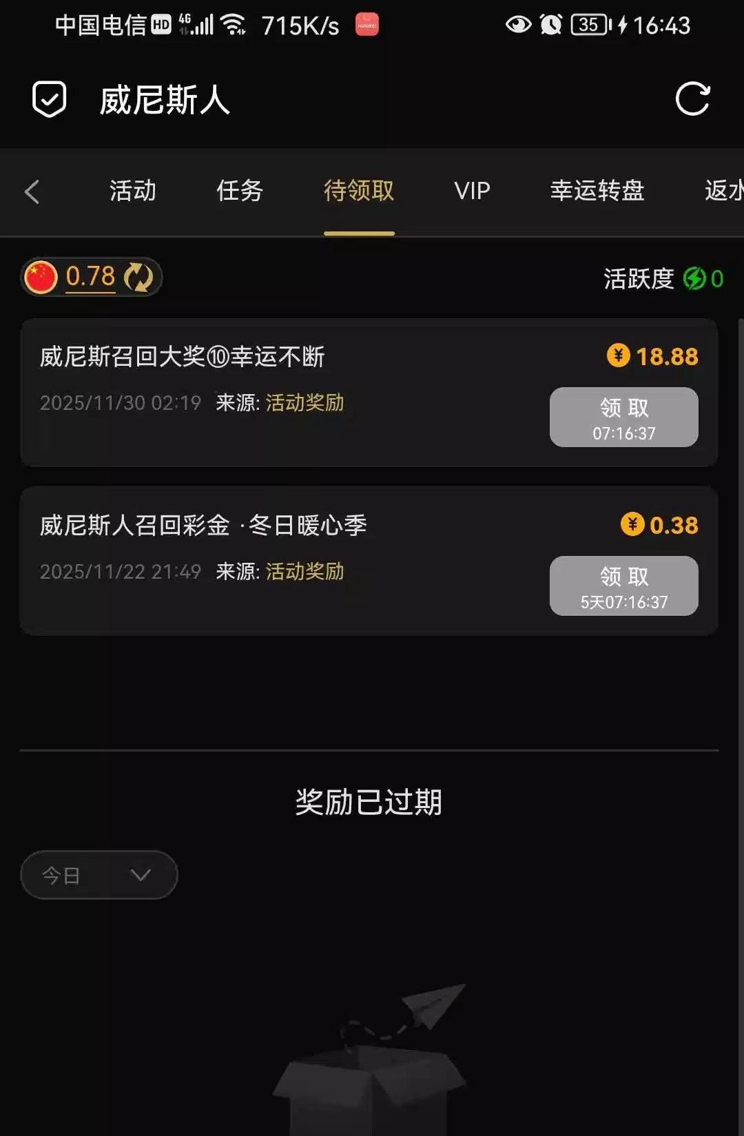 不知道是否需要充值过,我两个台几个月没有充值了,2号可领。392.com 806.com