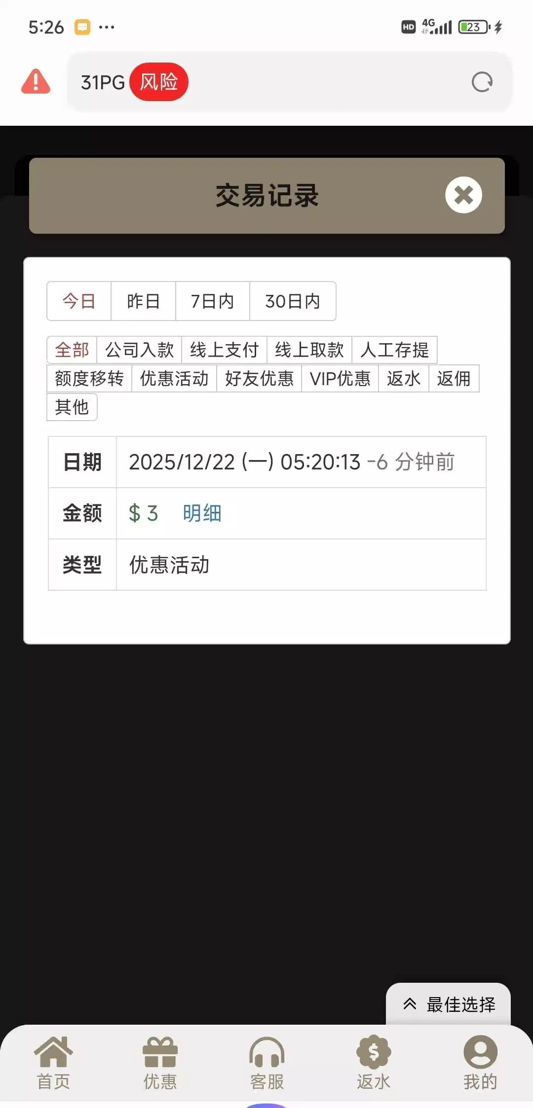 下午接的境外电话,十天前注册的账号,没充值过,3块没打出