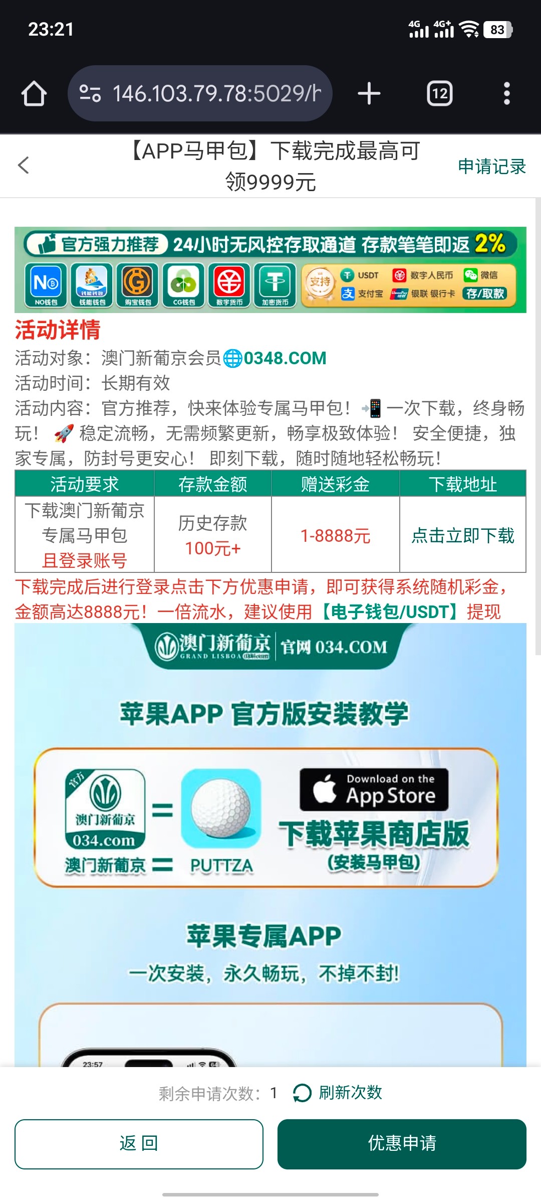 苹果用户 历史存款 100+自助活动里面下载申请 最低8元彩金