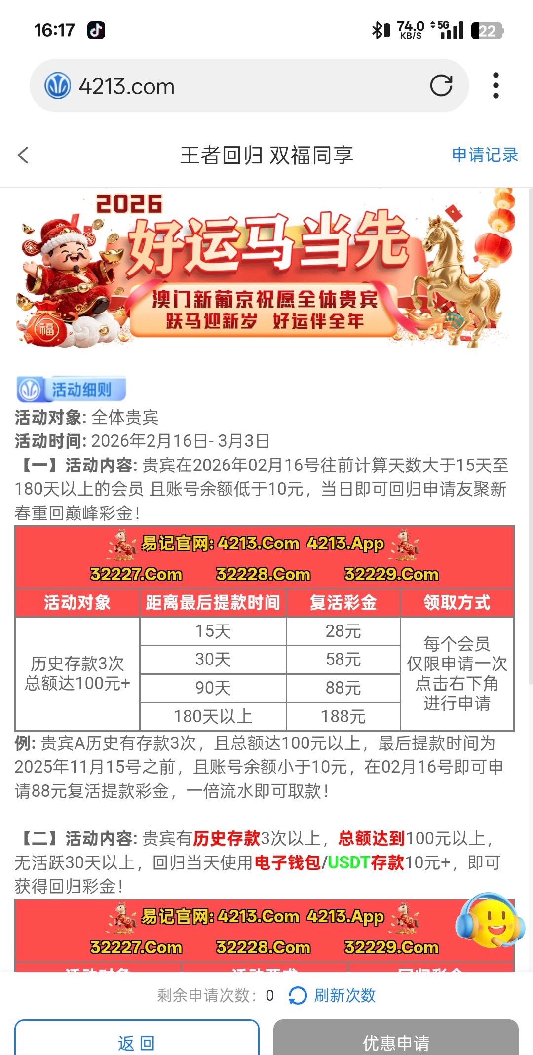 玩过的符合活动的自己去申请看看 4213.com