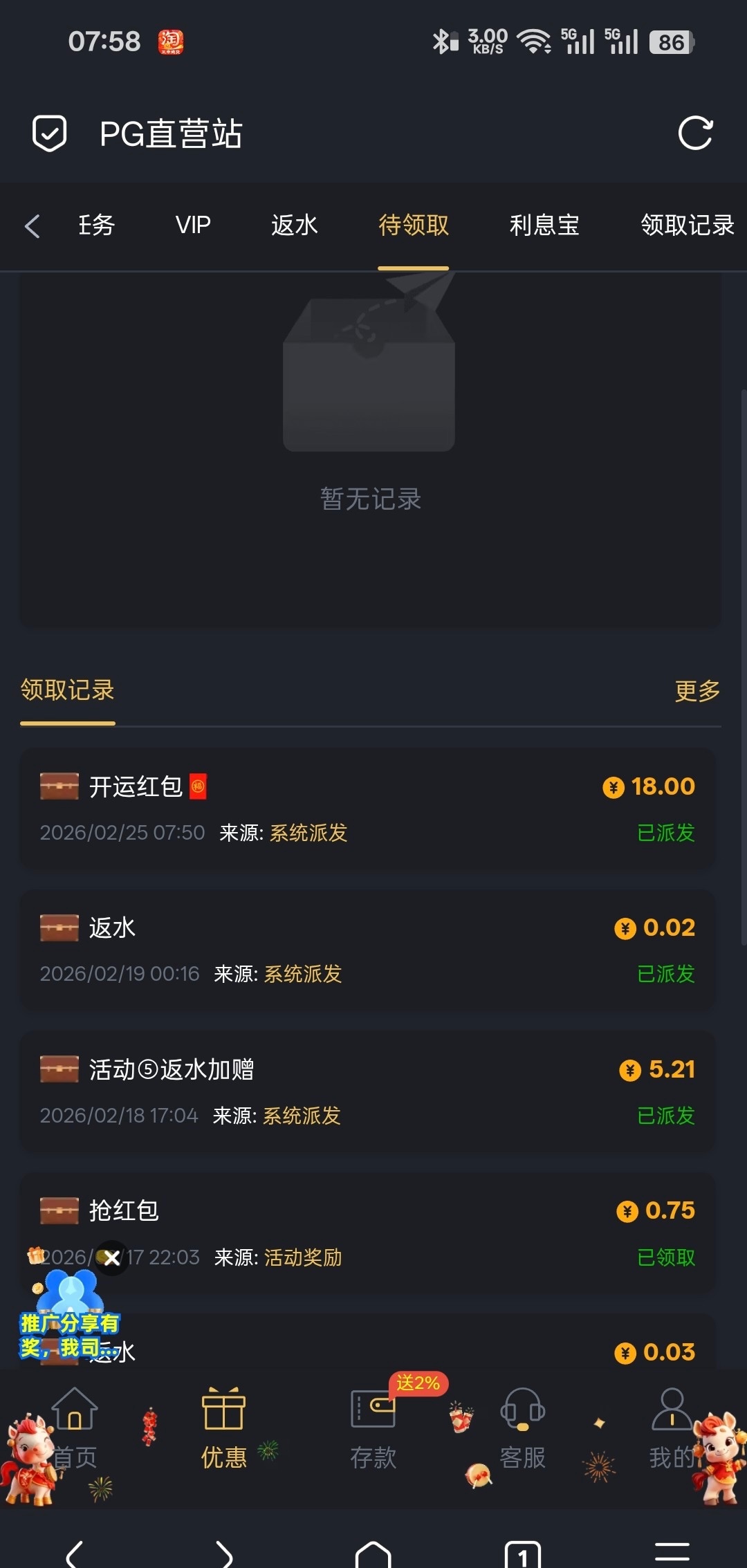 链接302.com好运金2个号都收到了18,充值过的去看看