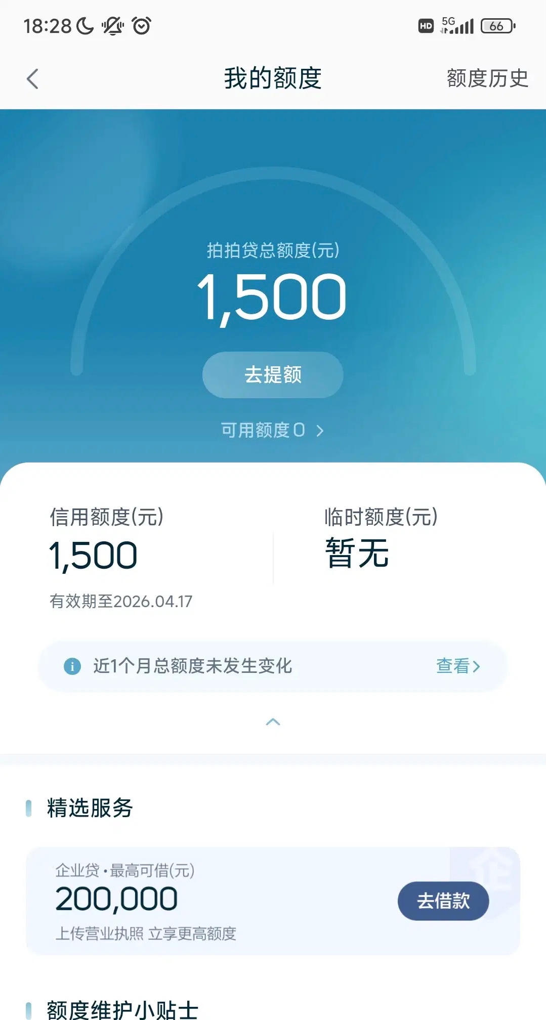 刚刚刷论坛看到有老哥拍拍贷下款了我也去试了下,很久之前给了1500额度,之前试了好多次都没下,刚刚五百下了三次。赶紧试试,最好五百一次,不要一次借完额度,一次借完大概率被拒