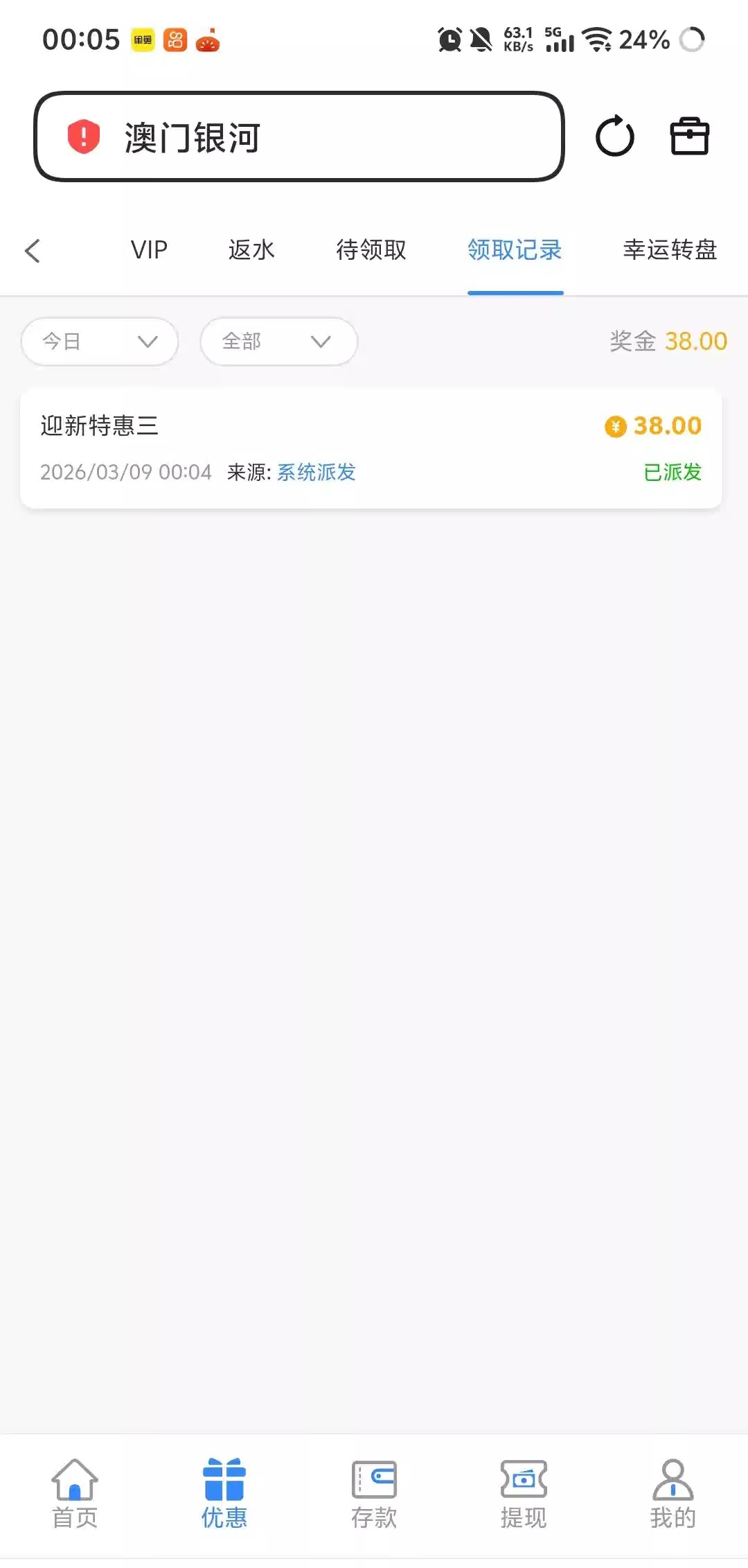 过年都有撸这台的那个双倍得意彩金吧,我就打了3万多水,这个台第一个老哥发帖注册的到今天刚好一个月,5天就过期了,发个帖提醒一下,别忘了,充值满1000去!!!