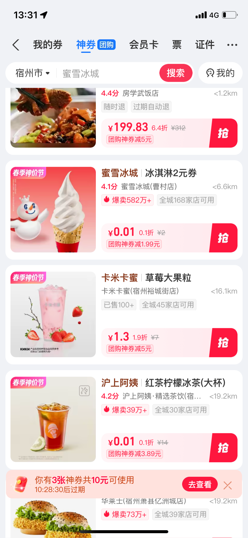 支付宝,点击卡包,会蹦出一个无门槛的5元券,0.01能吃个冰淇淋,或者小孩姨做的大杯饮料,老哥们吃一口去去火吧, ,