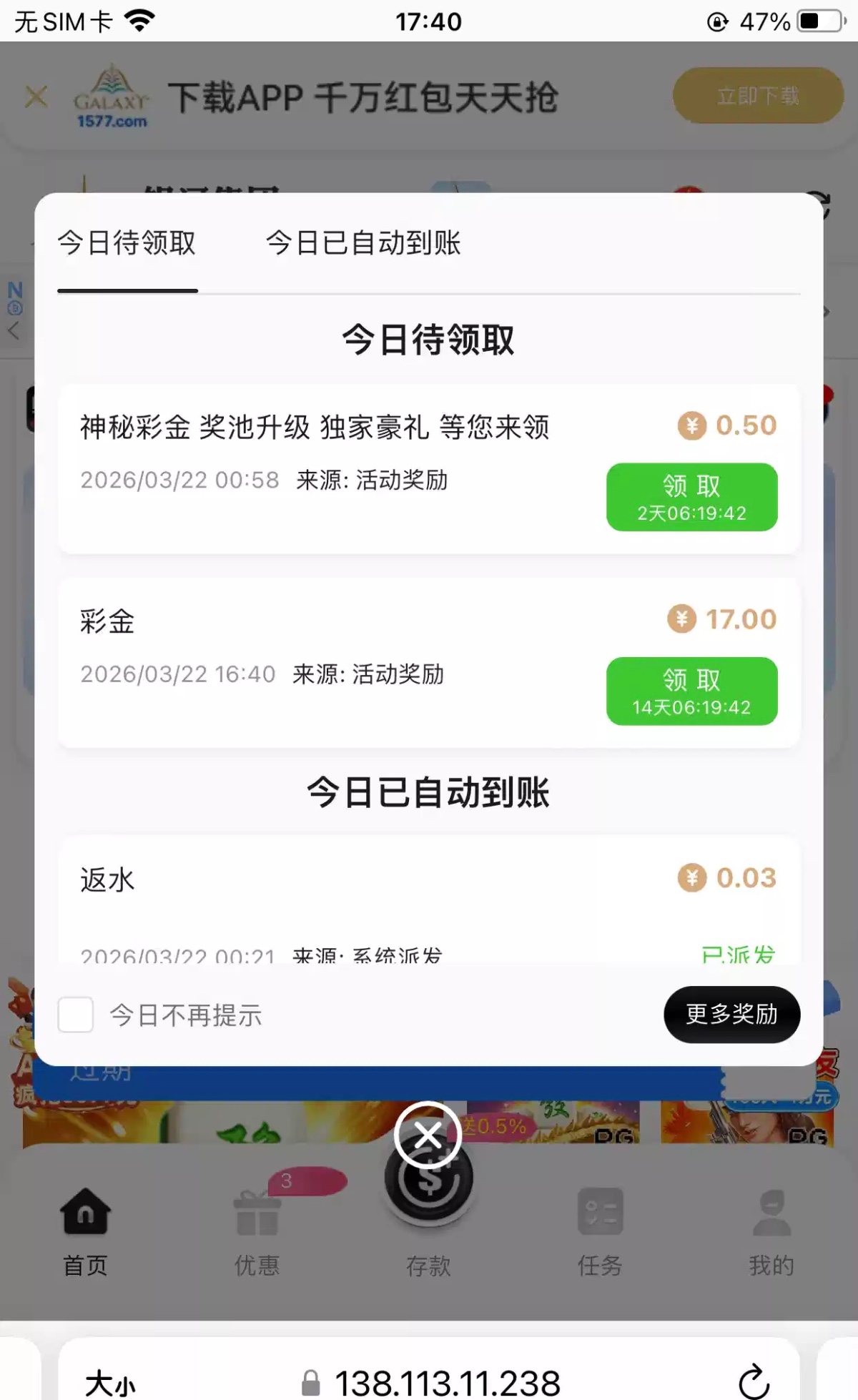登陆有17两个号都有,有号的可以登陆看看,10倍流水提,我提了155 1577.com