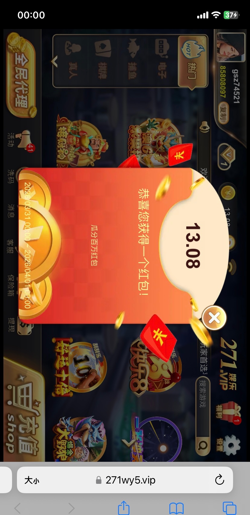 【271棋牌-瓜分红包雨】